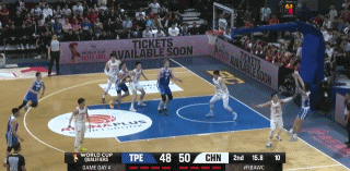 当时中国台北队进攻不中,焦泊乔拿下篮板球准备反击,无奈一次失误葬送好局,中国台北队抢断由刘铮用高难度三分球完成半场“绝杀”。