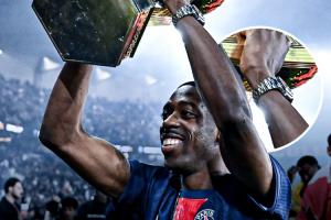 登贝莱在赛季还未结束的情况下,目前已有33球入账,因此他赢得了赌注并已经穿戴上新手表。28岁的登贝莱本赛季是巴黎的绝对大腿,他为球队出战47场收获33球12助。